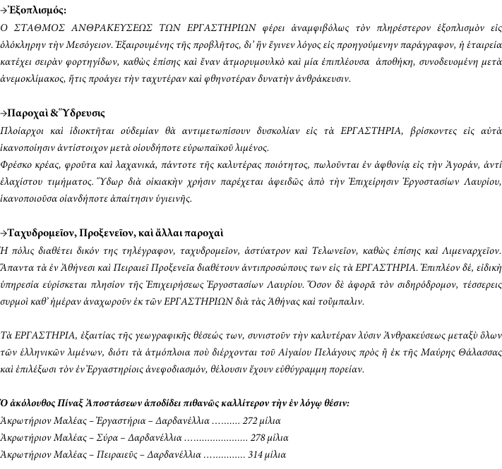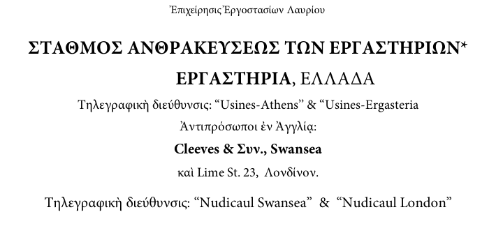 Αποσπάσματα  από το ενημερωτικό έντυπο της  “Societe des Usines de Laurium  του 1912 (από το αρχείο του Εμποροεπαγγελματικού Συλλόγου Λαυρίου «ΕΡΜΗΣ»)